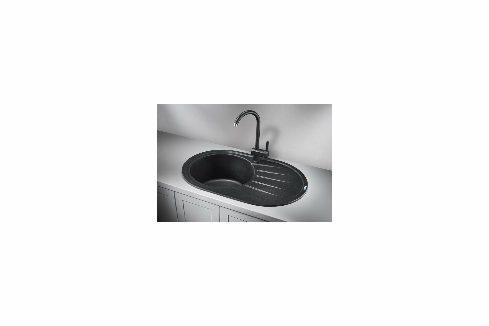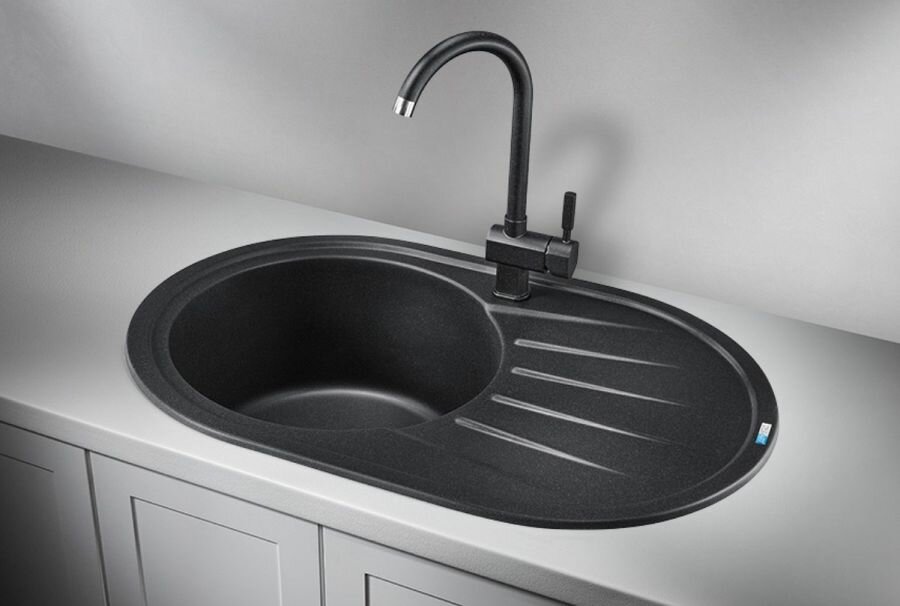 Кухонная мойка кварцевая Granula Standart ST-7601 овальная с крылом, стандарт, чаша D 390, цвет черный (7601bl)