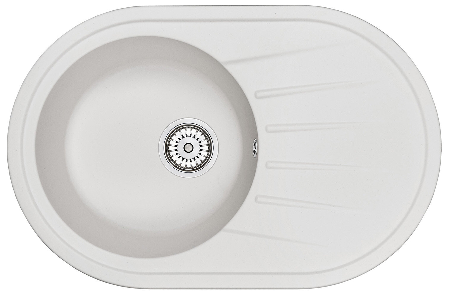 Кухонная мойка кварцевая Granula ST-7601 овальная с крылом, стандарт, чаша D 390, цвет белый (7601wh)