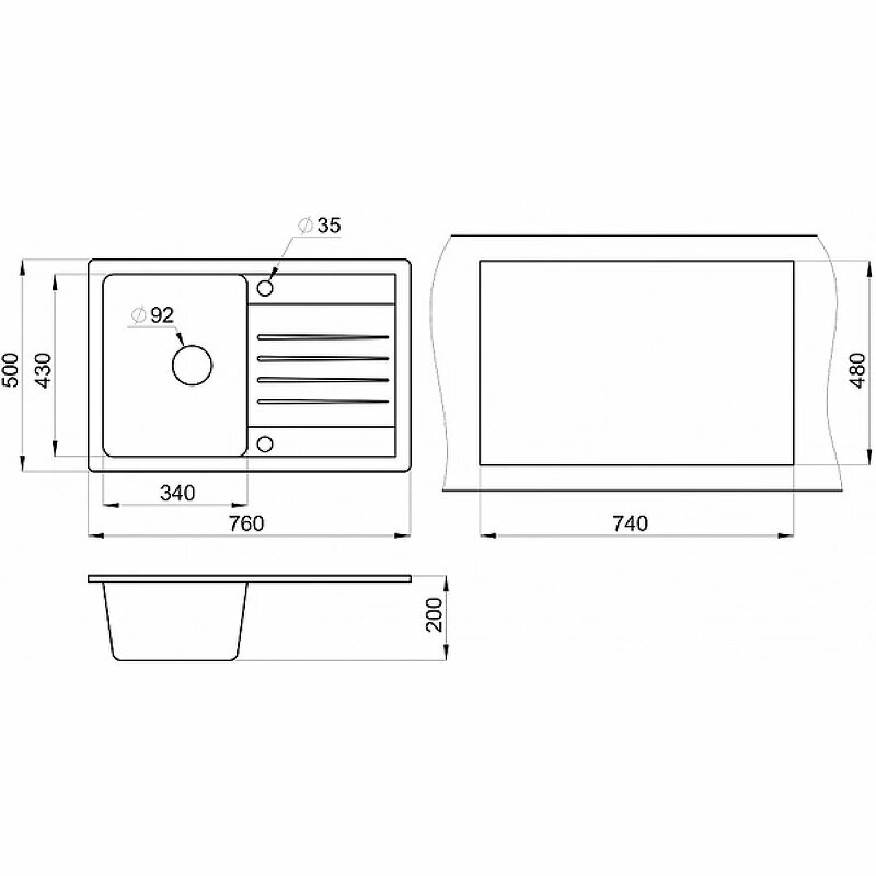 Кухонная мойка GRANULA ST-7602, кварц, 76см х 50см