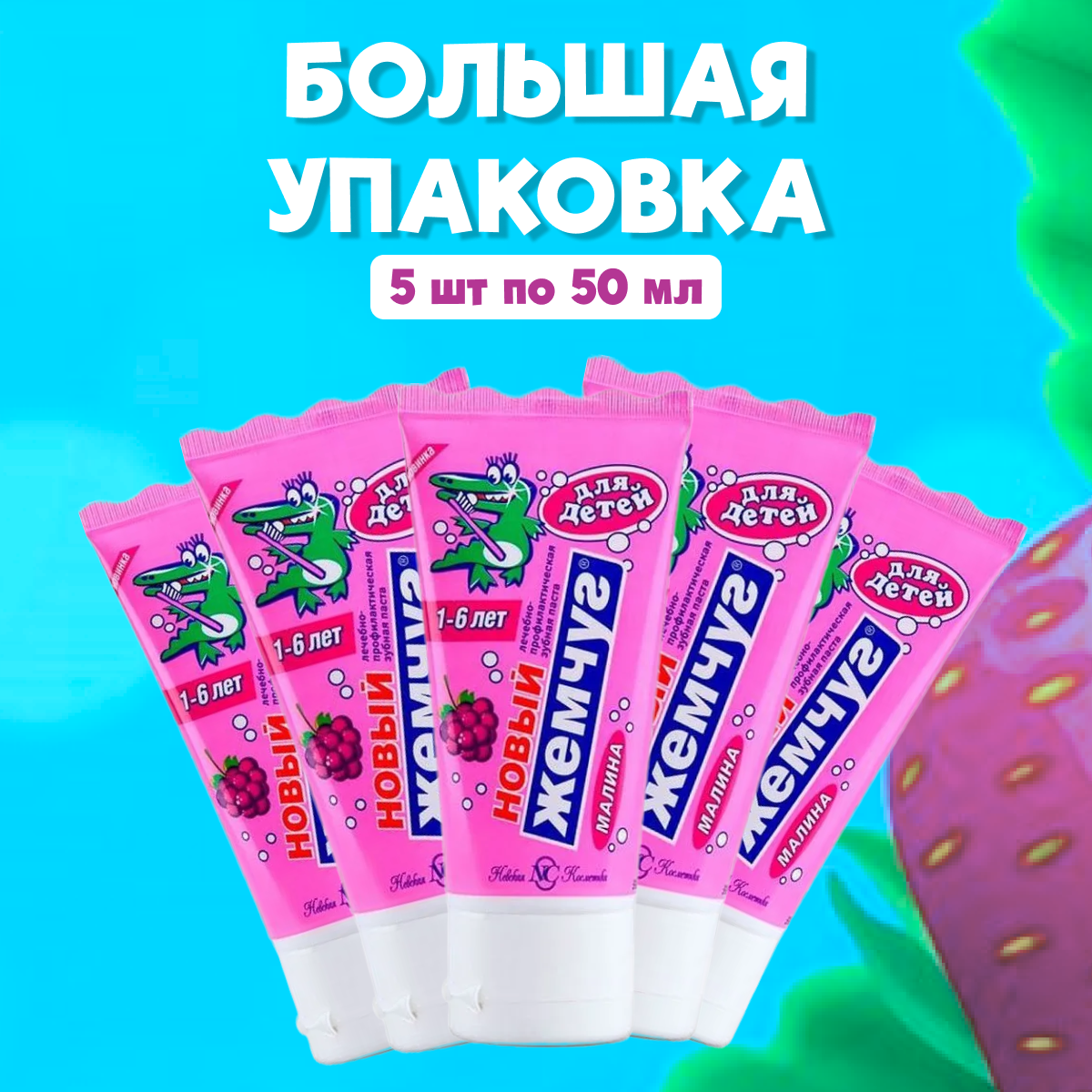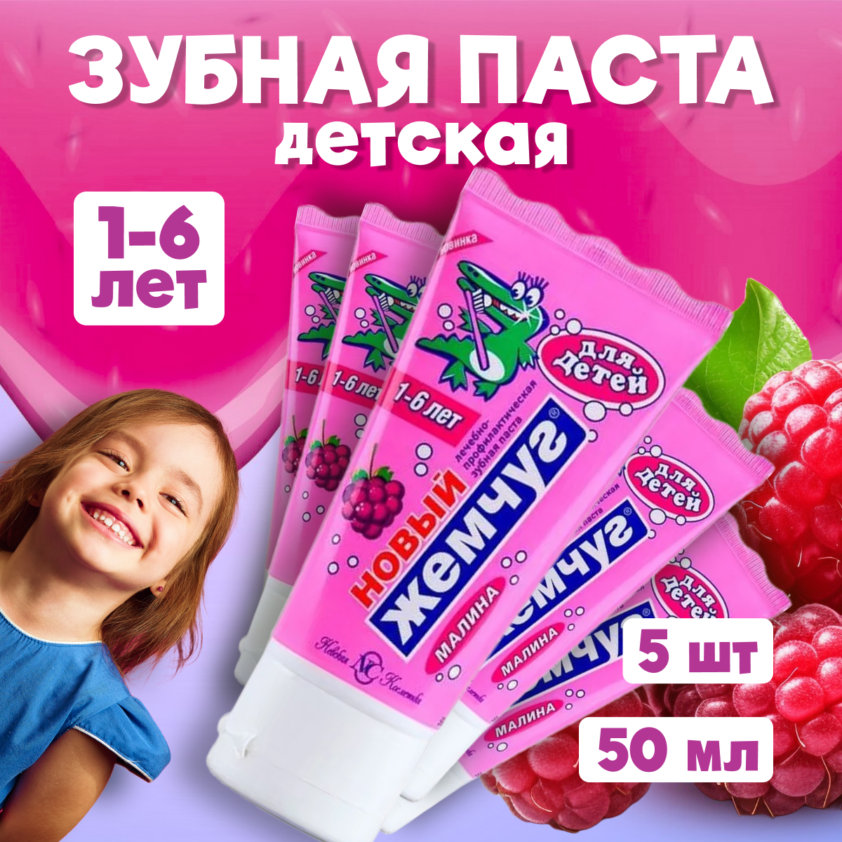 Купить Зубная паста Новый Жемчуг Малина детская 5 шт по 50 мл