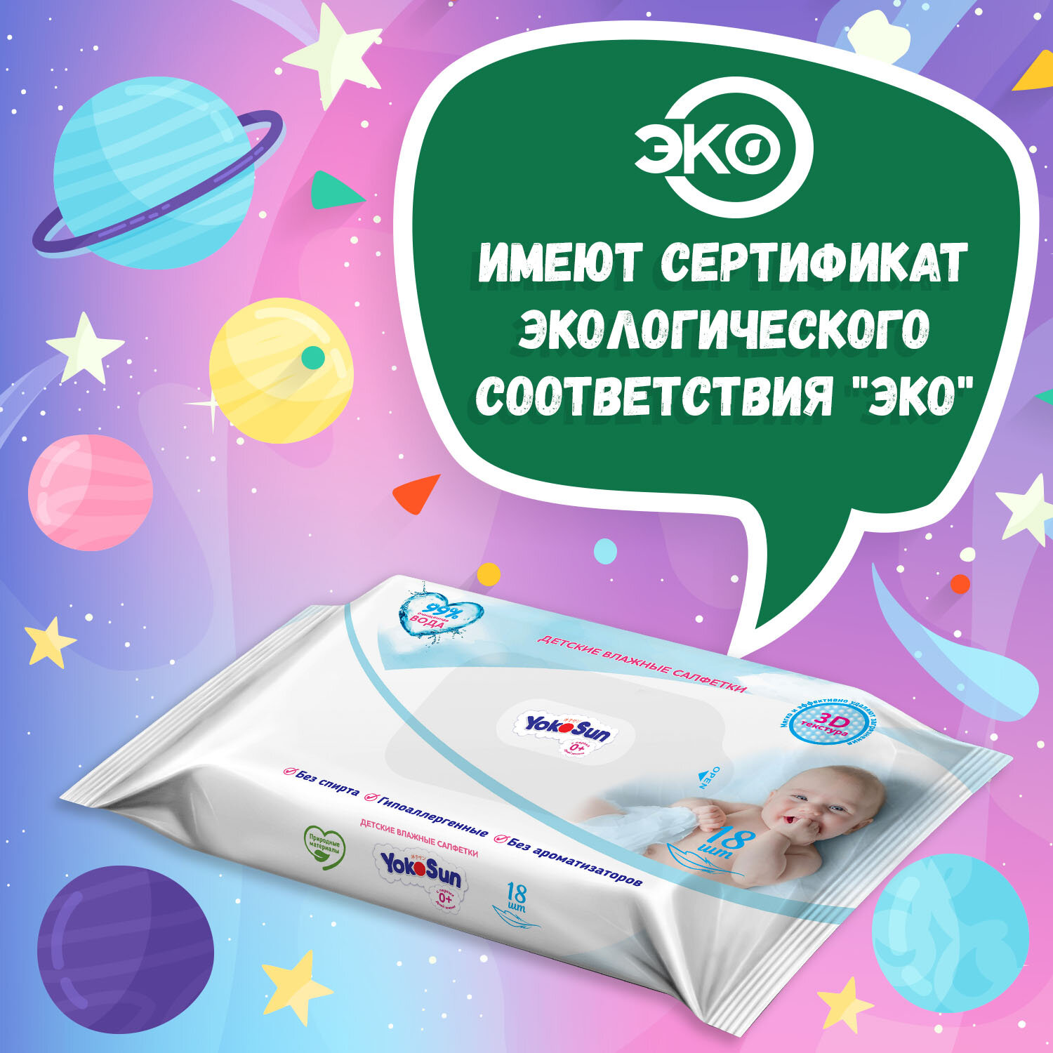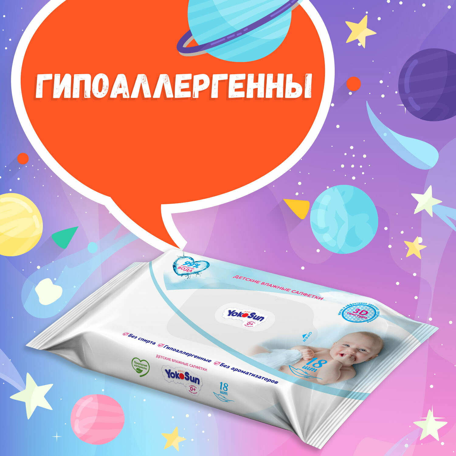 Детские влажные салфетки YokoSun гигиенические, 18 шт.