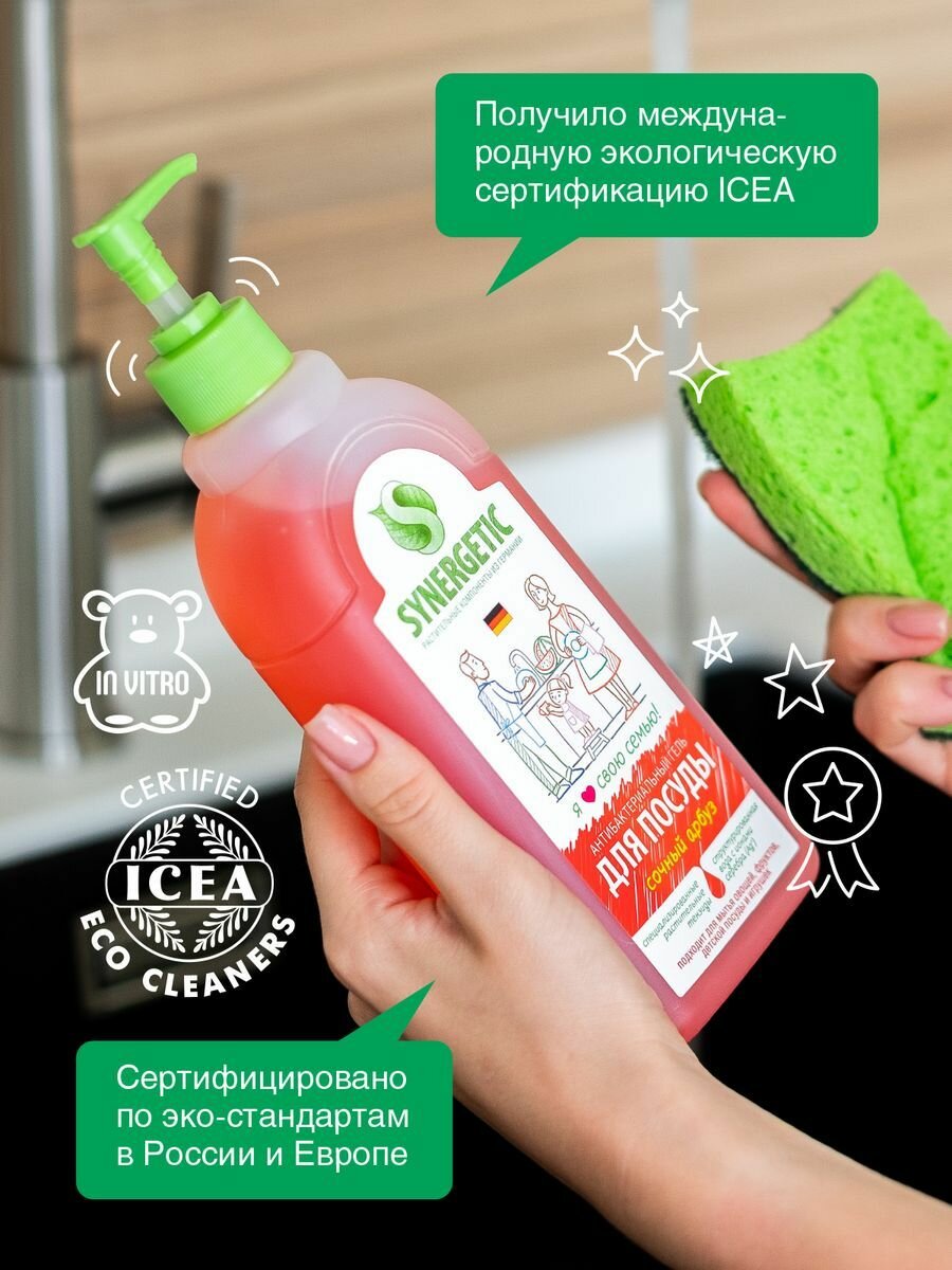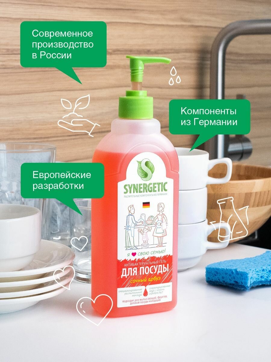 Synergetic Средство для мытья посуды антибактериальное, Сочный Арбуз, 500мл