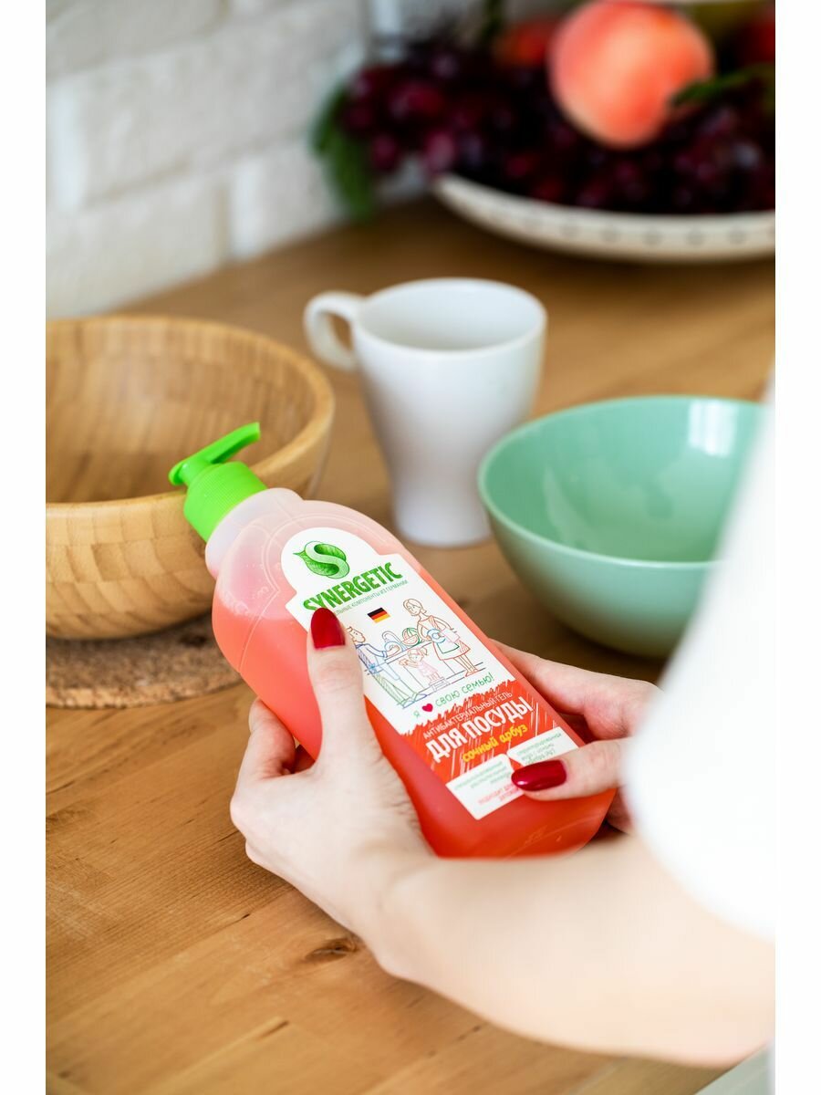 ? не оставляет запаха ? подходит для детской посуды и игрушек ? можно мыть фрукты ? и овощи ? ? антибактериальный?? ? состоит из биоразлагаемых компонентов ?удаляет жир в ледяной воде ? удобный дозатор |
