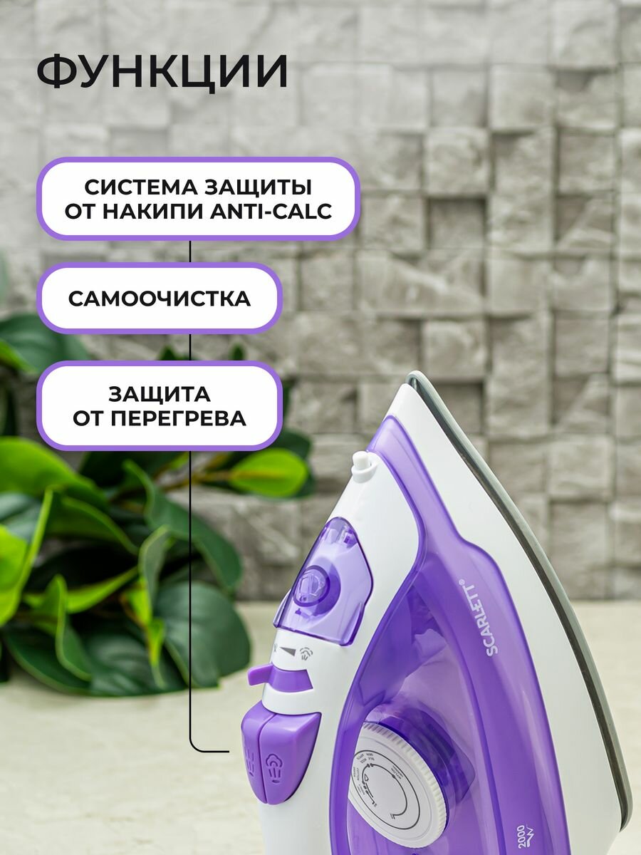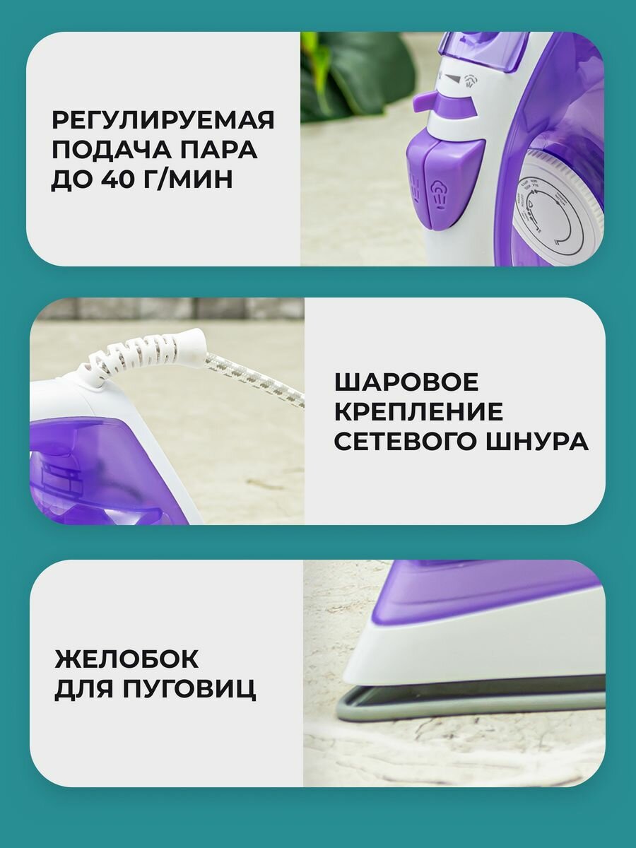 Подошва не прилипает к ткани, защита от накипи и самоочистка, вертикальное отпаривание.