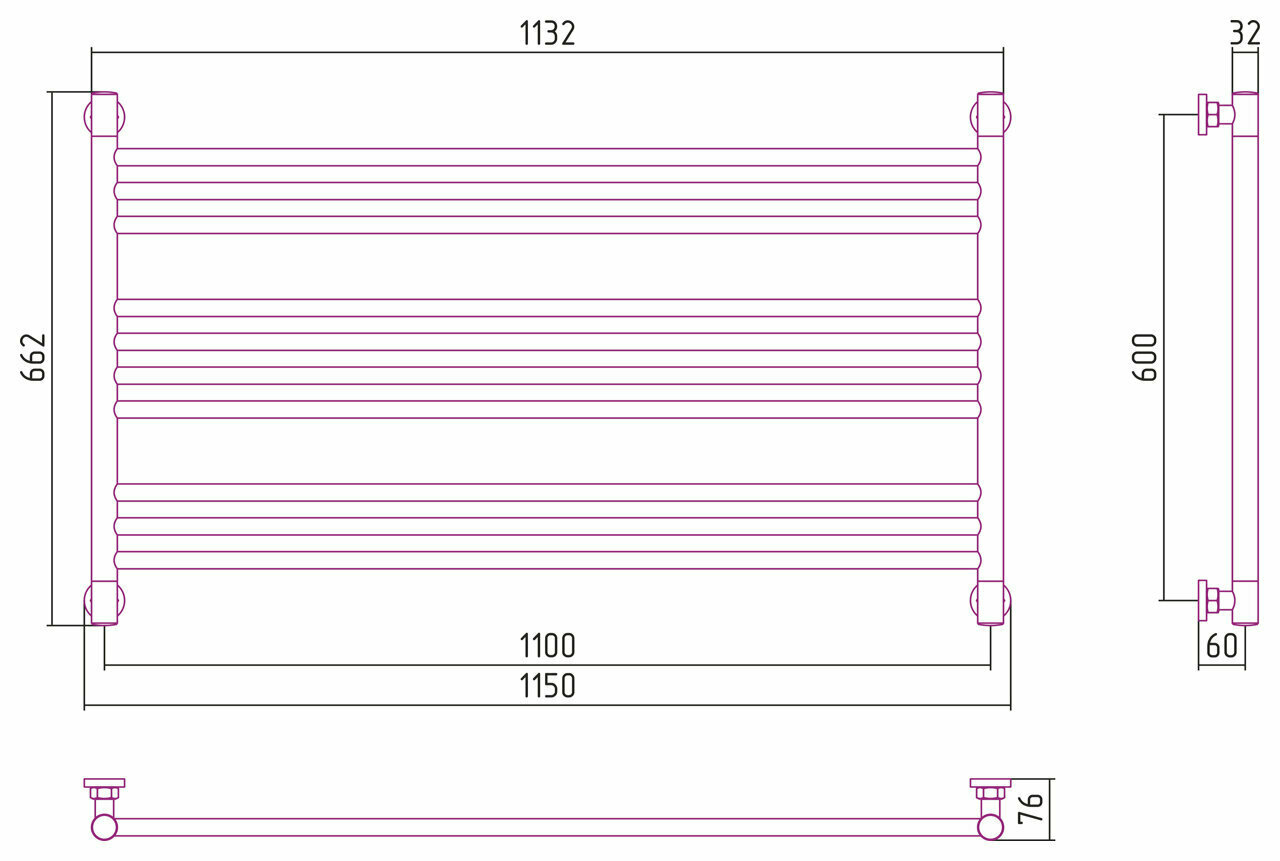 Полотенцесушитель водяной Сунержа Модус 1200х600 Матовый чёрный