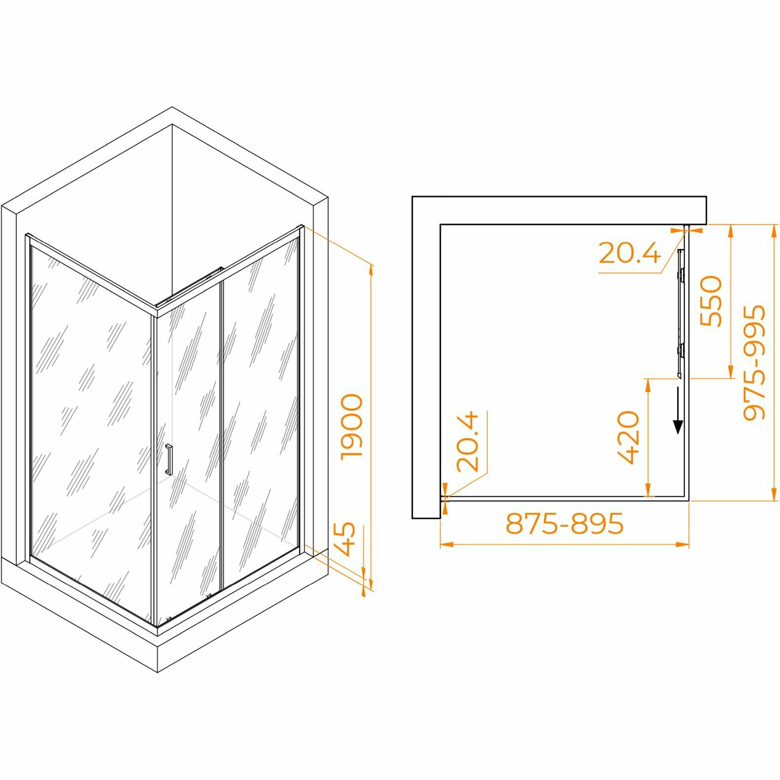 Душевой уголок RGW Passage 90 х 100 х 190 см PA-245 прямоугольный, хром цвет, прозрачное стекло 6 мм, EasyClean (410824590-11)