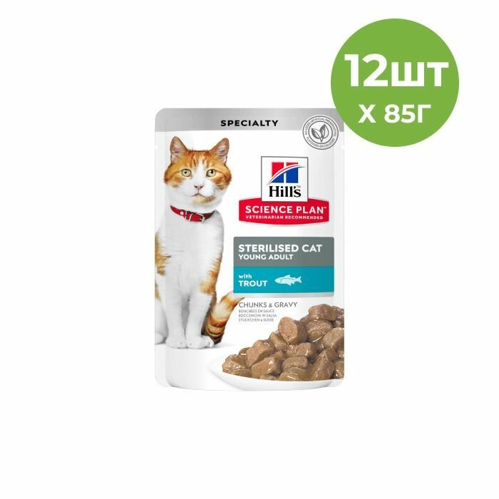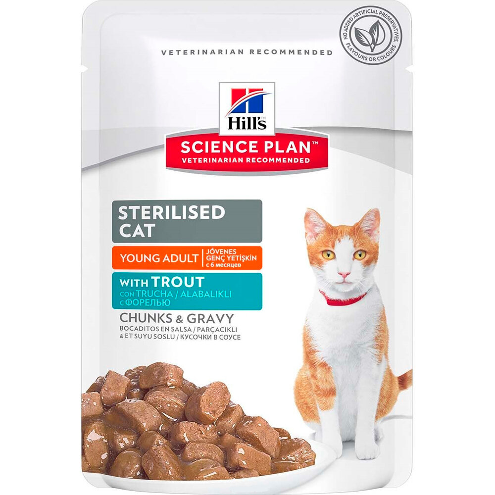 Влажный корм Hill's Science Plan для молодых стерилизованных кошек и кастрированных котов, пауч с форелью в соусе, 85 г х 12 шт.