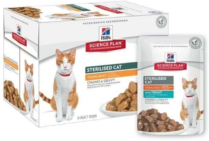 Корм влажный HILLS Hill's Science Plan Sterilised Cat Young Adult with Trout для стерилизованных кошек до 6 лет, Форель 12шт.*85 г