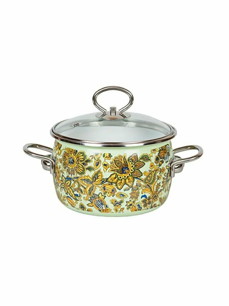 Купить Кастрюля Империо (Imperio) салатовая 3л эмалированная сталь, со стеклянной крышкой VITROSS