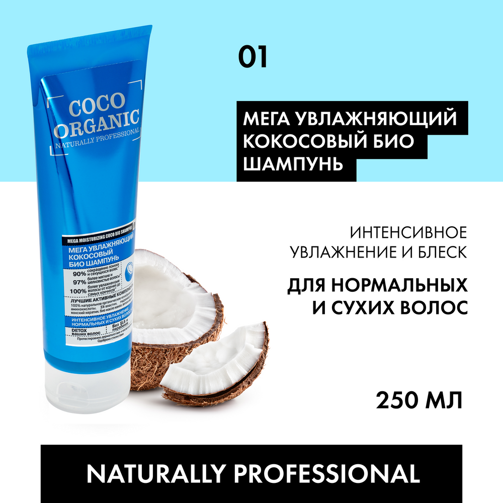 Organic Shop био-шампунь Coco Organic naturally professional Мега увлажняющий кокосовый, 250 мл