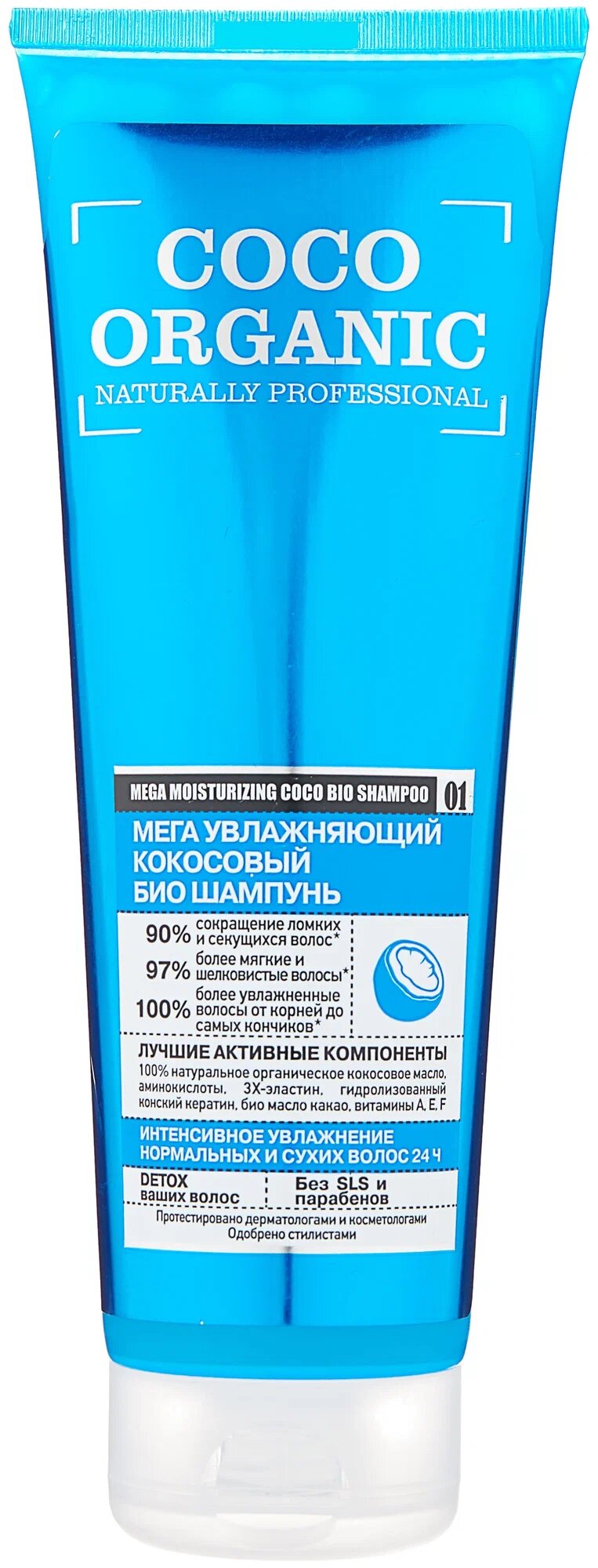 Био шампунь для волос "Мега увлажняющий" Organic naturally professional Coco, 250 мл