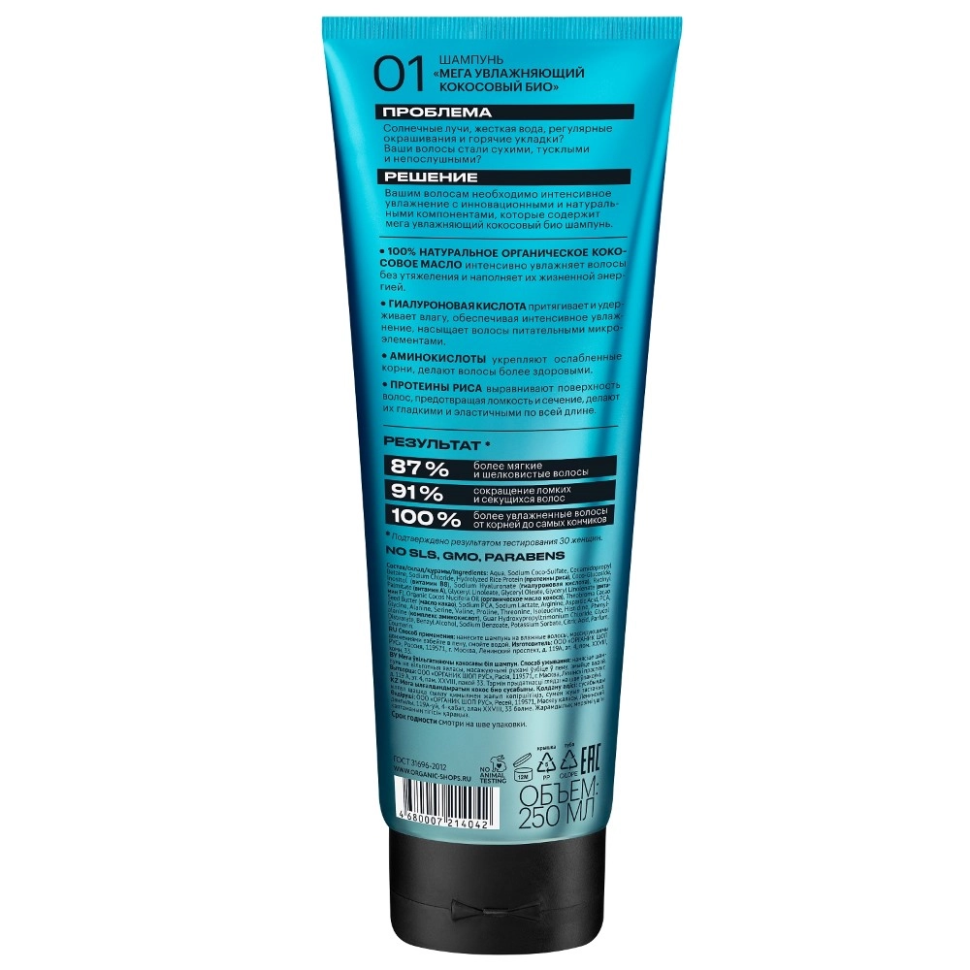 Organic Shop Naturally Professional Шампунь для волос Мега увлажняющий Кокосовый 250мл