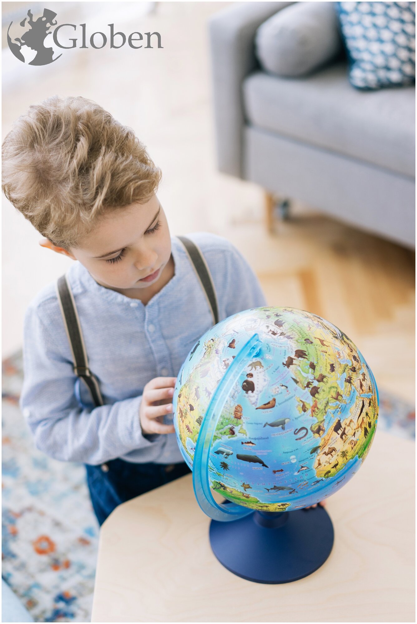 Глобус зоогеографический GLOBEN «Классик Евро», диаметр 250 мм, с подсветкой, детский