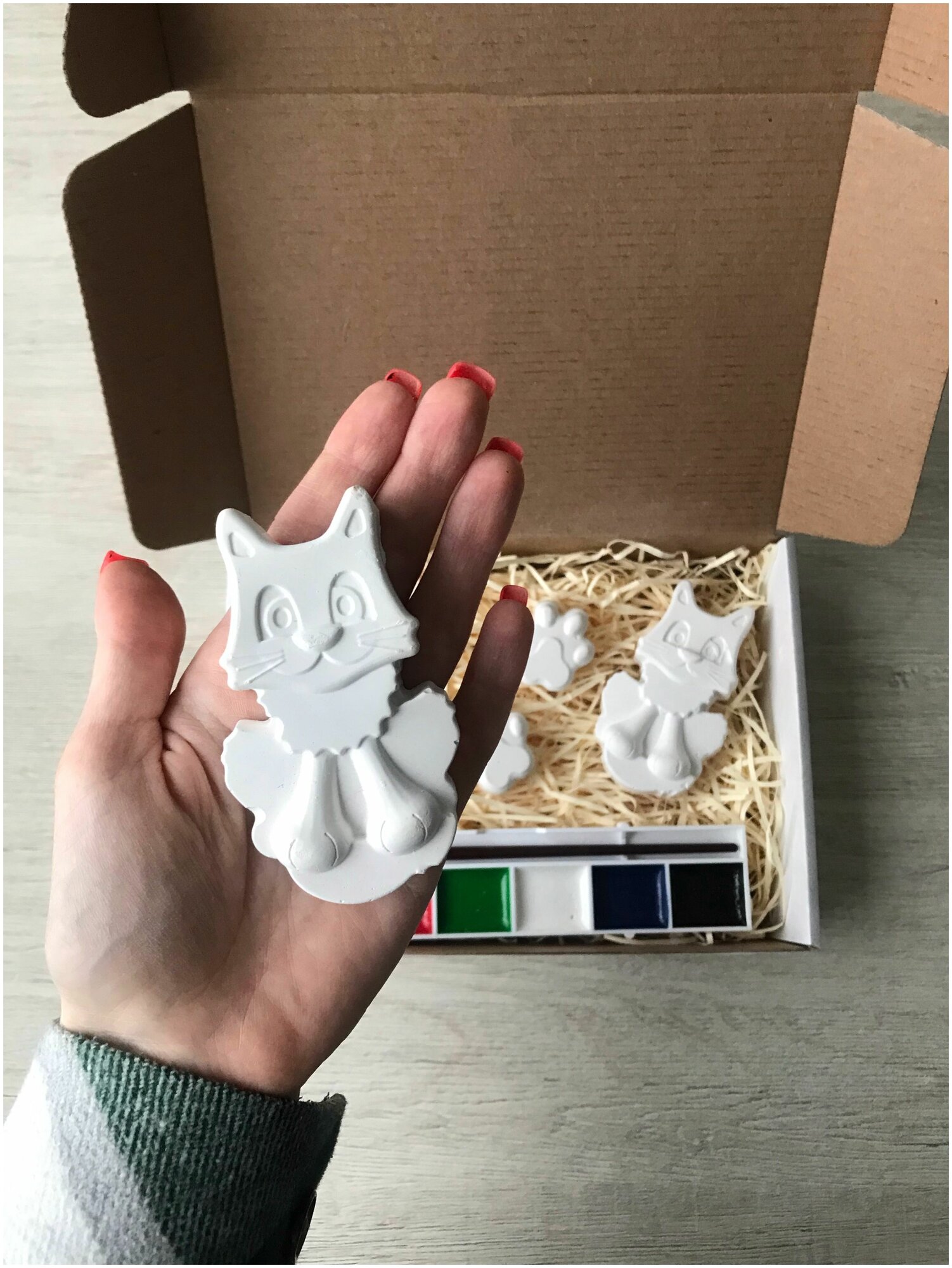 Купить Подарочный набор кошечки для детей многоразовый / 3D раскраска 4 шт - 2 лапки и 2 котика / Набор интерактивных игрушек для росписи с кисточкой и красками