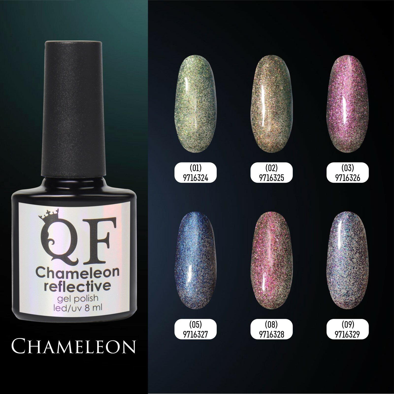Queen fair Гель-лак для ногтей 3-х фазный LED/UV 8мл светоотражающ хамелеон (03) малин/тёмн зелён QF