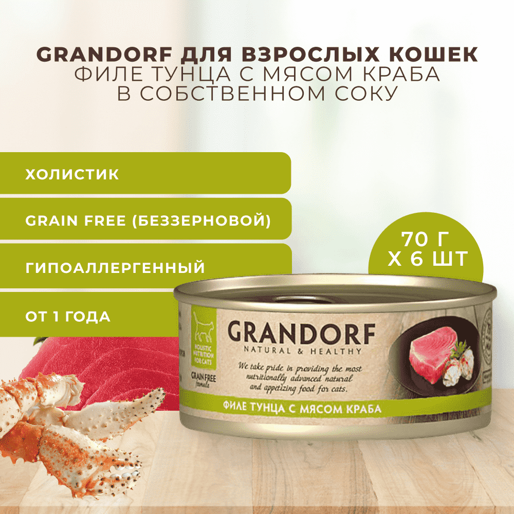 Влажный корм Grandorf для кошки, филе тунца с мясом краба, 70 гр, 6 шт. (67gr-40899)