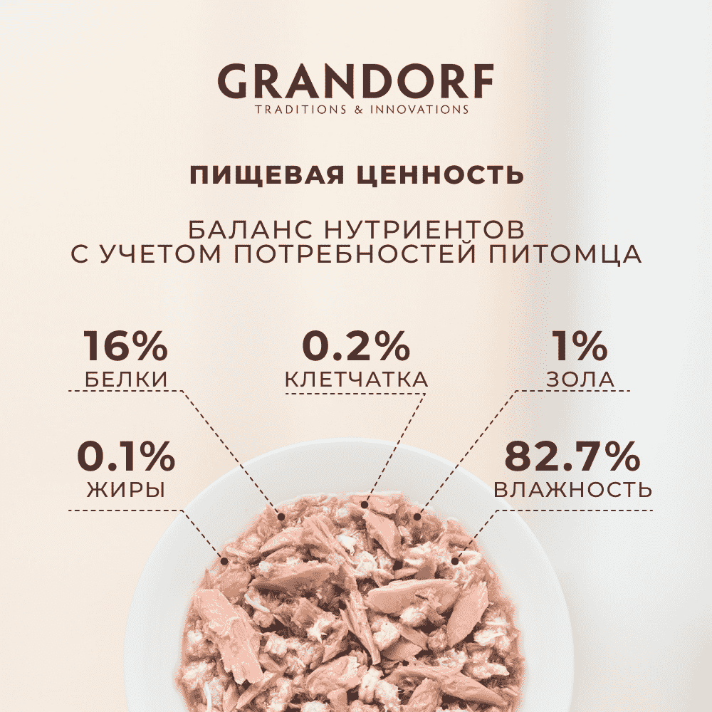 корм влажный для кошек Grandorf 70гр(6шт), Филе тунца с мидиями для всех возрастов