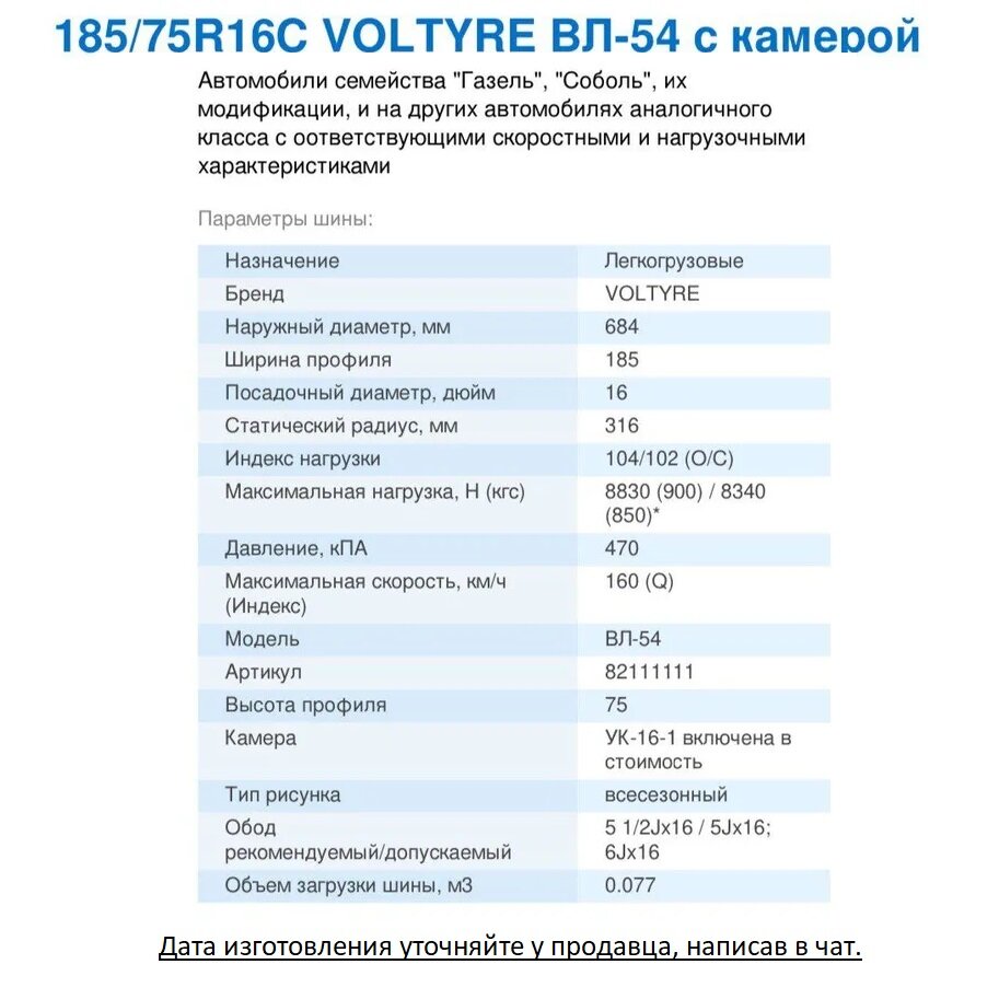 Шины Voltyre ВЛ-54 185/75 R16С 104/102Q-