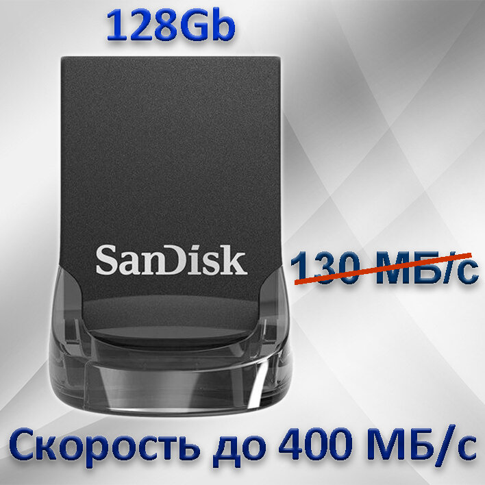 СохранитьФлешка Sandisk ULTRA FIT 128ГБ USB3.1 черный (SDCZ430-128G-G46) интересное: