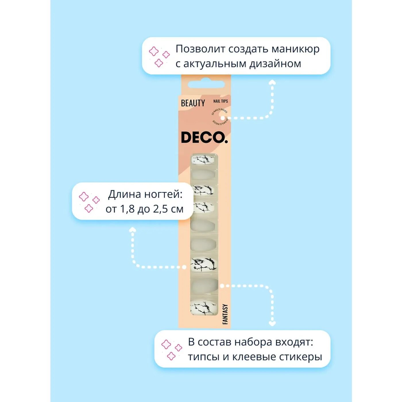 Набор накладных ногтей DECO. FANTASY grey marble (24 шт + клеевые стикеры 24 шт) интересное: