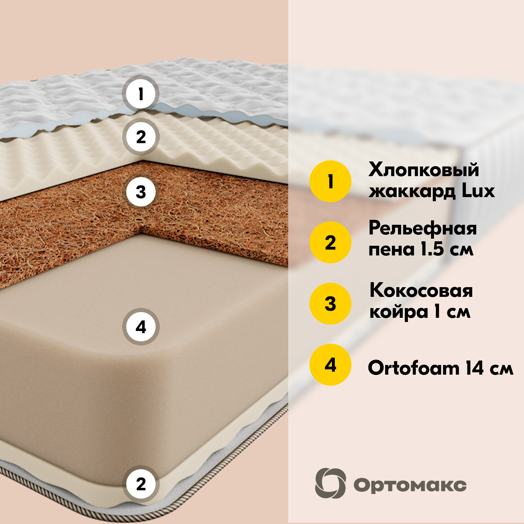 Матрас Ортомакс Premium Massage Cocos 90х190 (односпальный), беспружинный, премиальный, с массажным эффектом
