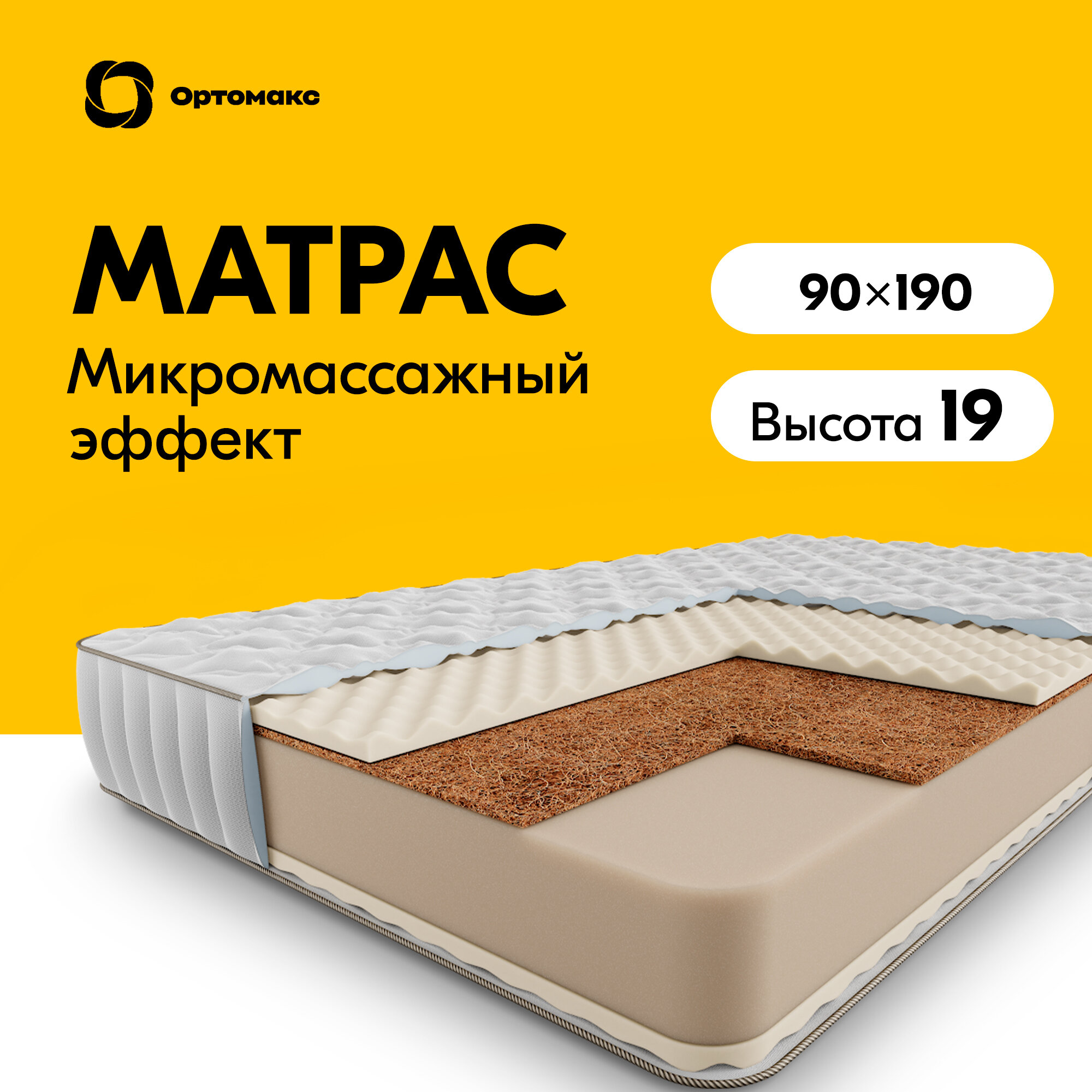 Матрас Ортомакс Premium Massage Cocos 90х190 (односпальный), беспружинный, премиальный, с массажным эффектом