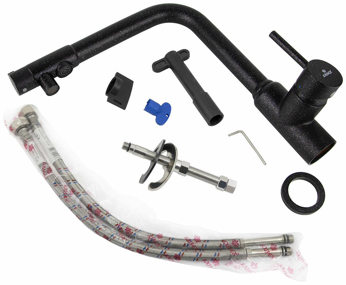 Смеситель кран для кухни и кухонной мойки с фильтром для питьевой воды Kaiser Teka черный 13044-2