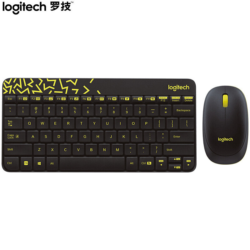 Комплект (клавиатура+мышь) Logitech MK240, USB, беспроводной, черный и жёлтый [920-008213]