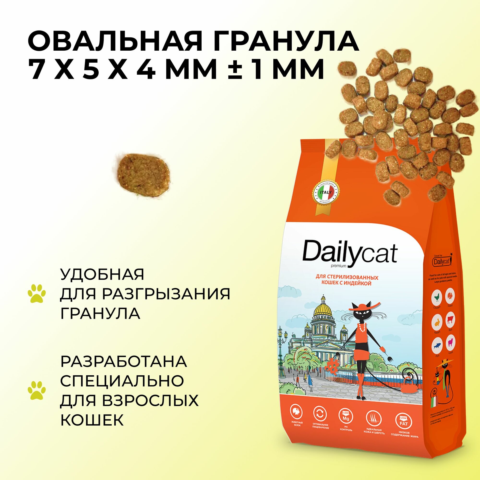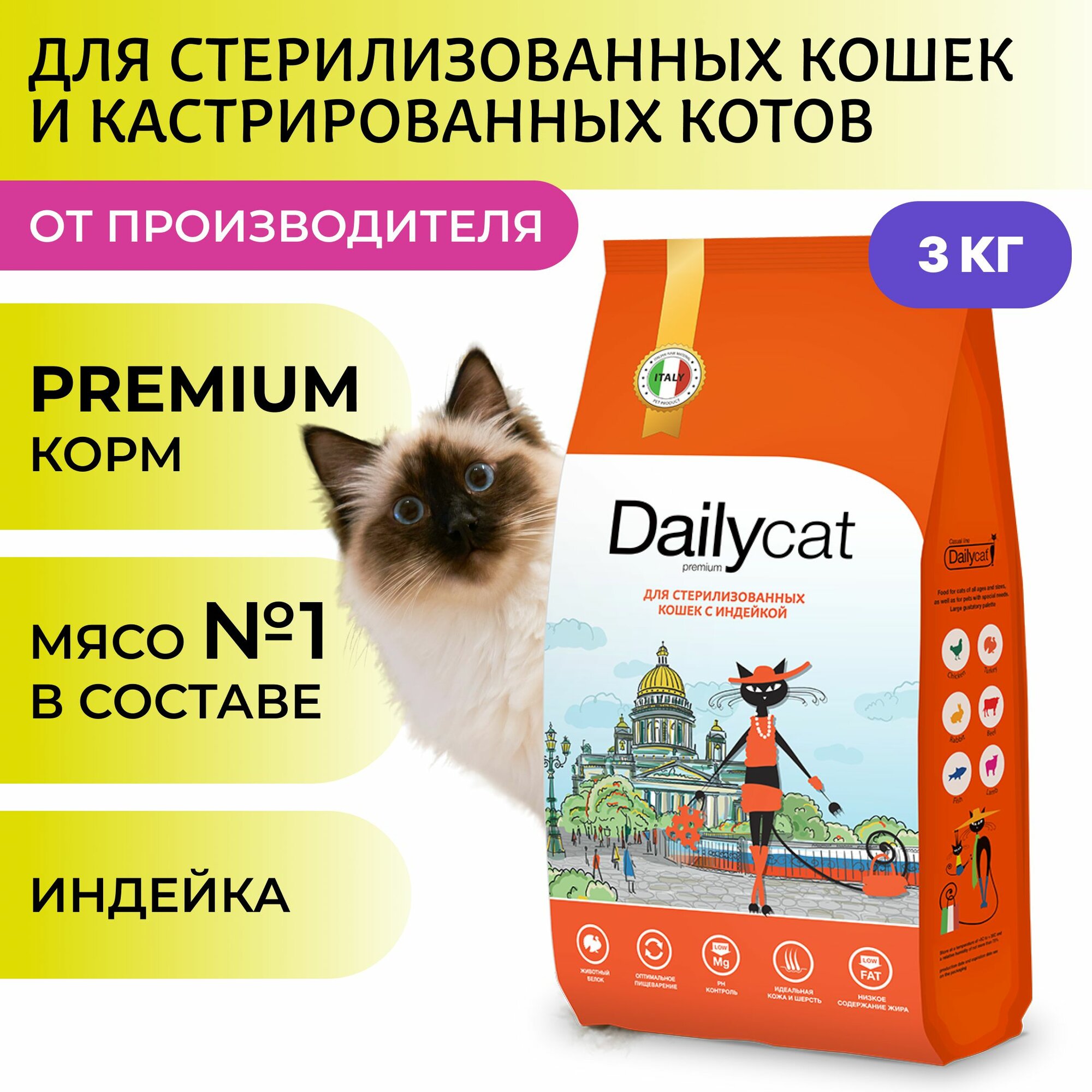 DailyPet DailyCat 3 кг Casual line Adult cat Steril Lite Turkey корм для стерилизованных кошек и кастрированных котов с индейкой