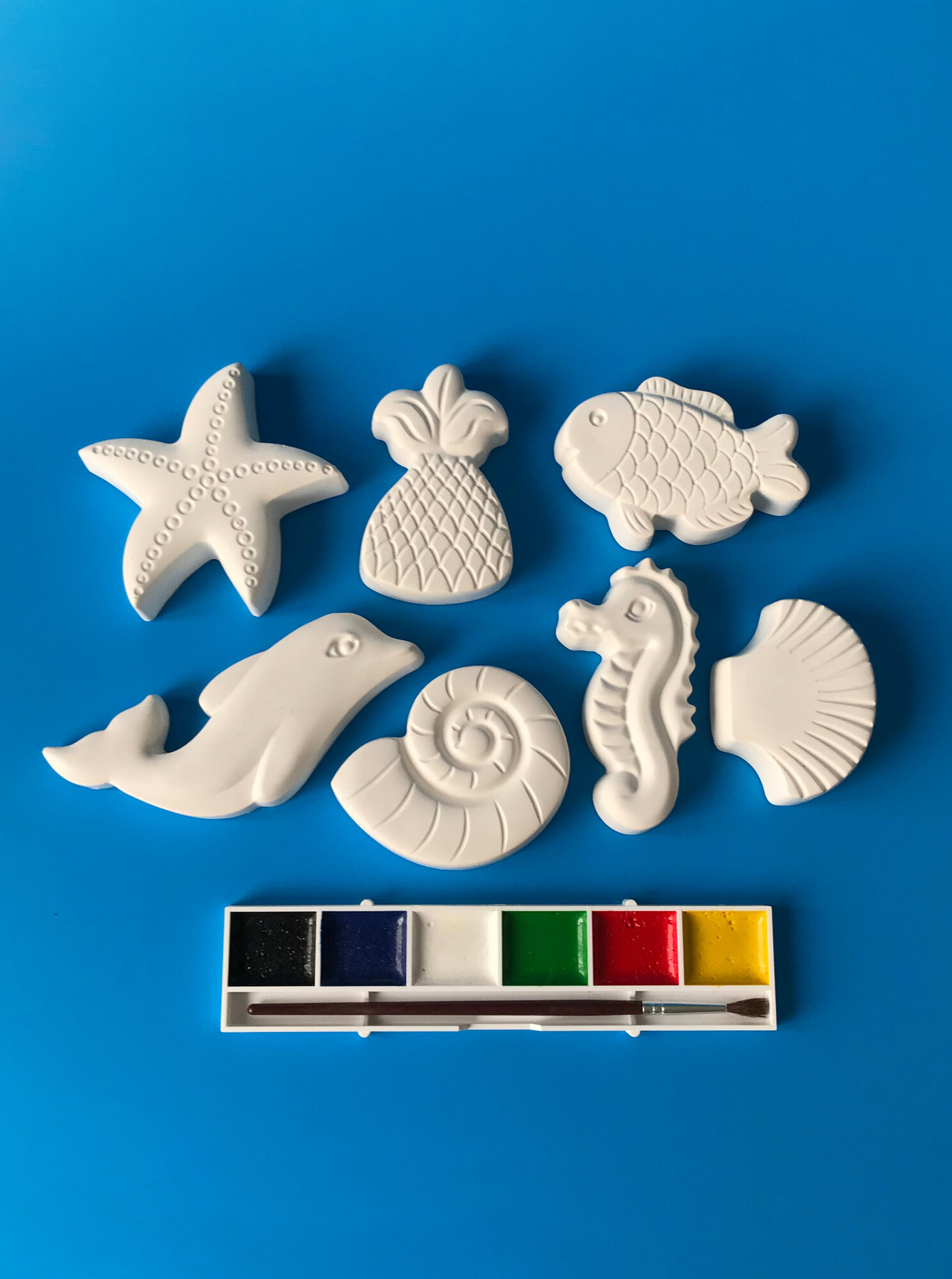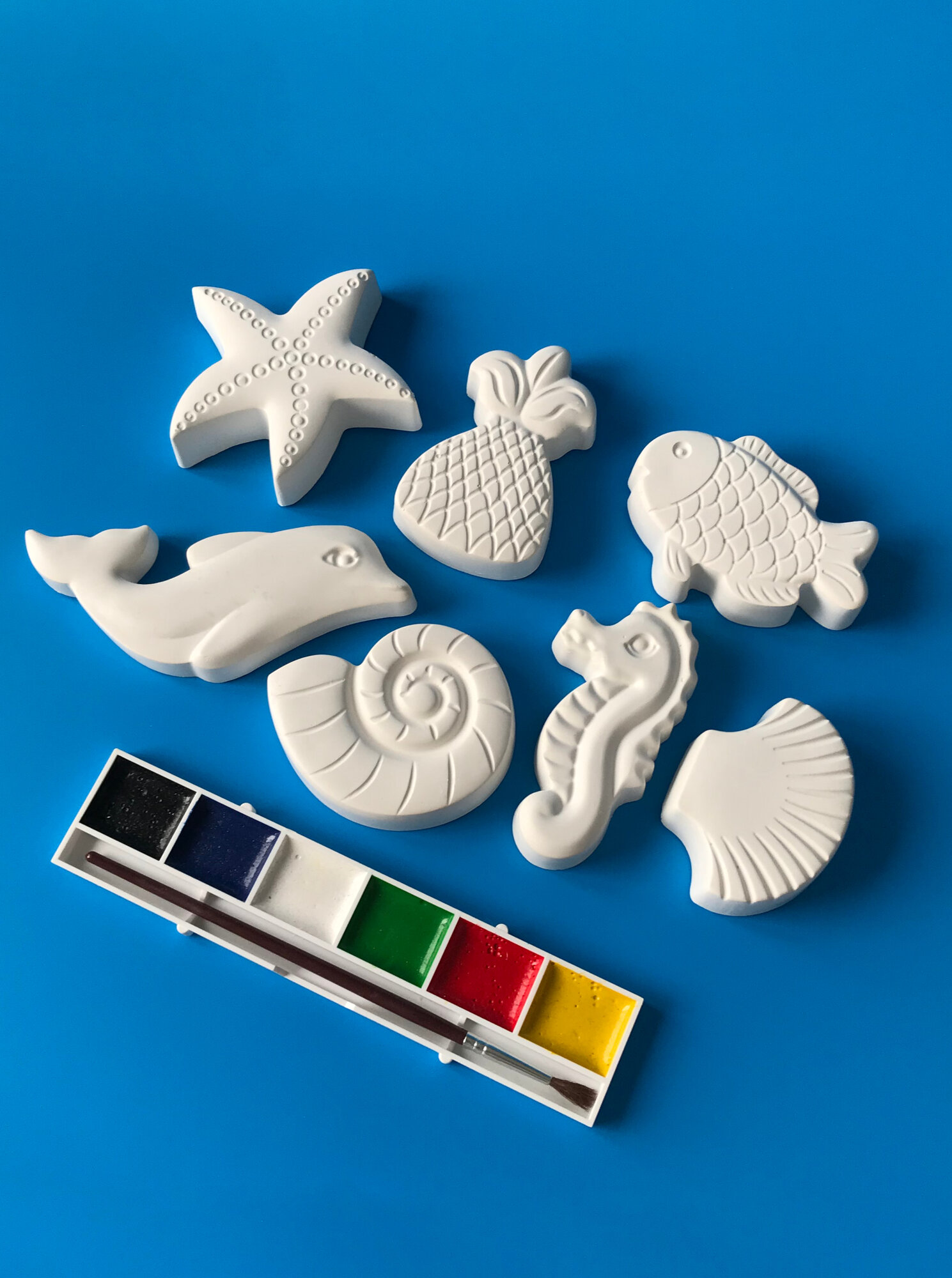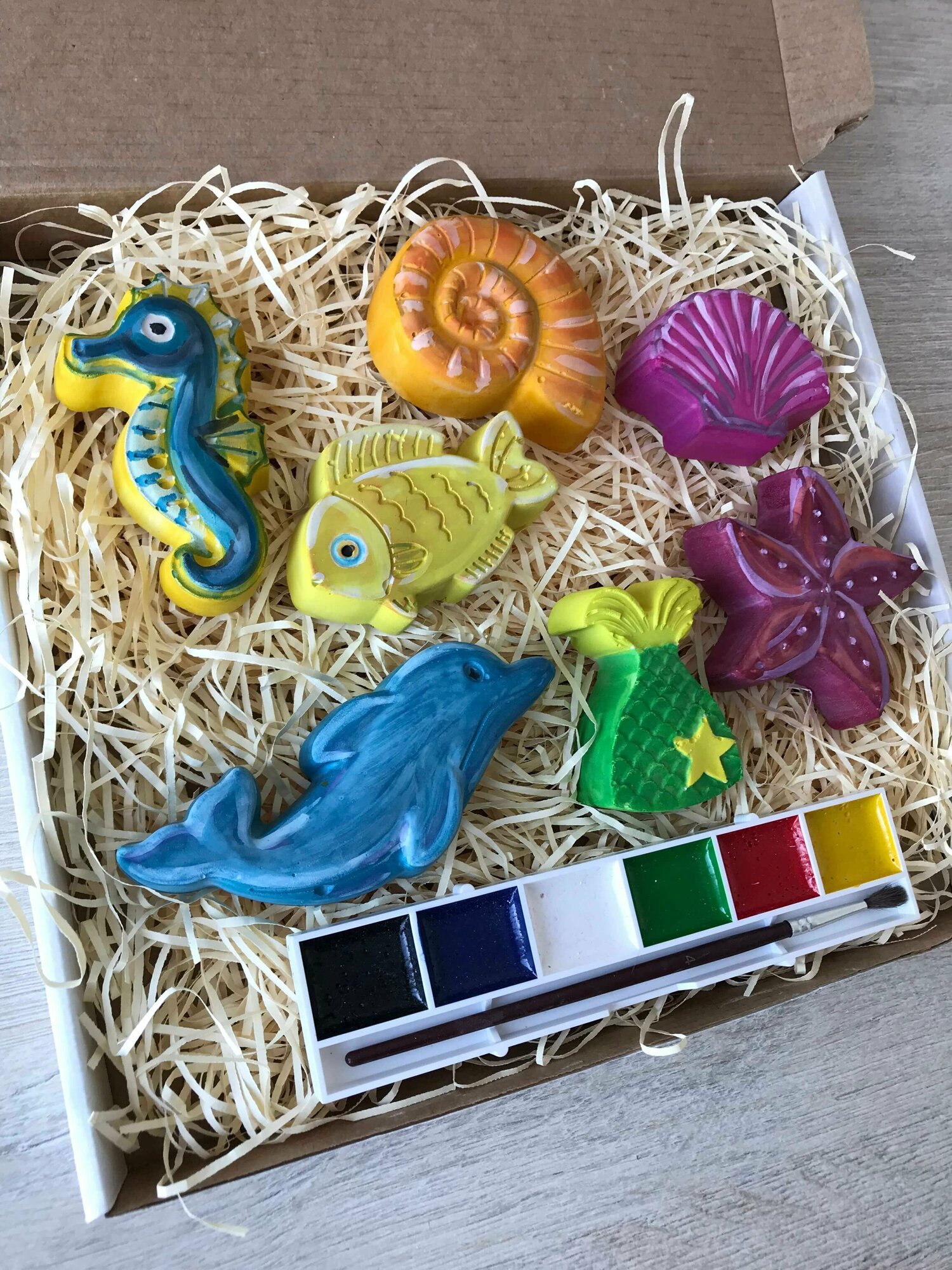 Купить Раскраски подводный мир объемные / Набор для развития 7 фигурок, кисточка, краски / Многоразовый комплект для творчества Сделай Сам