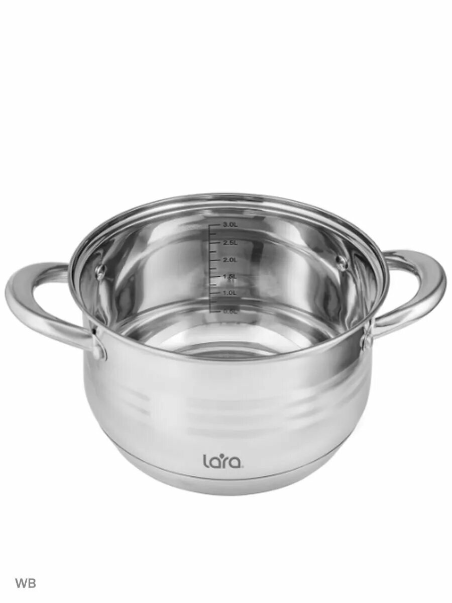 Кастрюля LARA LR02-581, 2.9л, с крышкой, серебристый