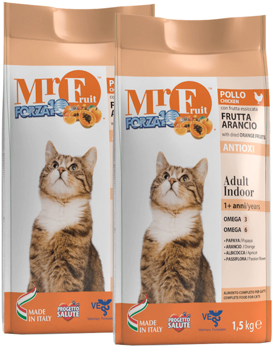 Купить FORZA10 CAT MR.FRUIT ADULT INDOOR для взрослых кошек живущих дома с курицей (1,5 + 1,5 кг)