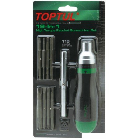 Отвертка реверсивная + удлинитель, биты 19в1. TOPTUL (GAAR1002)