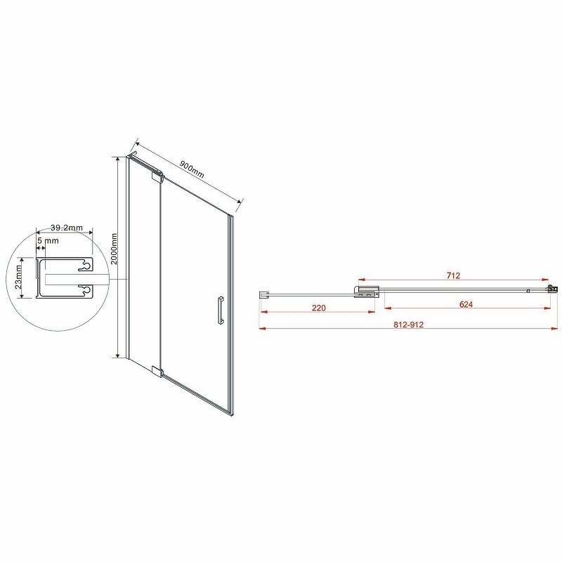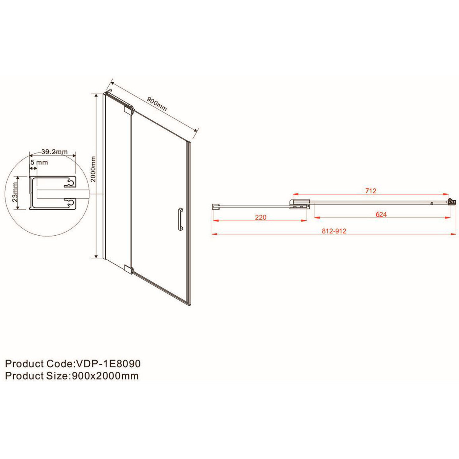 Душевая дверь Extra VDP-1E8090CL, 800/900, хром, стекло прозрачное
