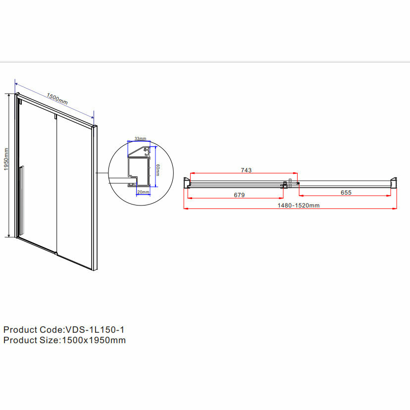 Душевая дверь Vincea Lugano 195х150 VDS-1L150CLB-1