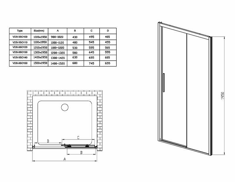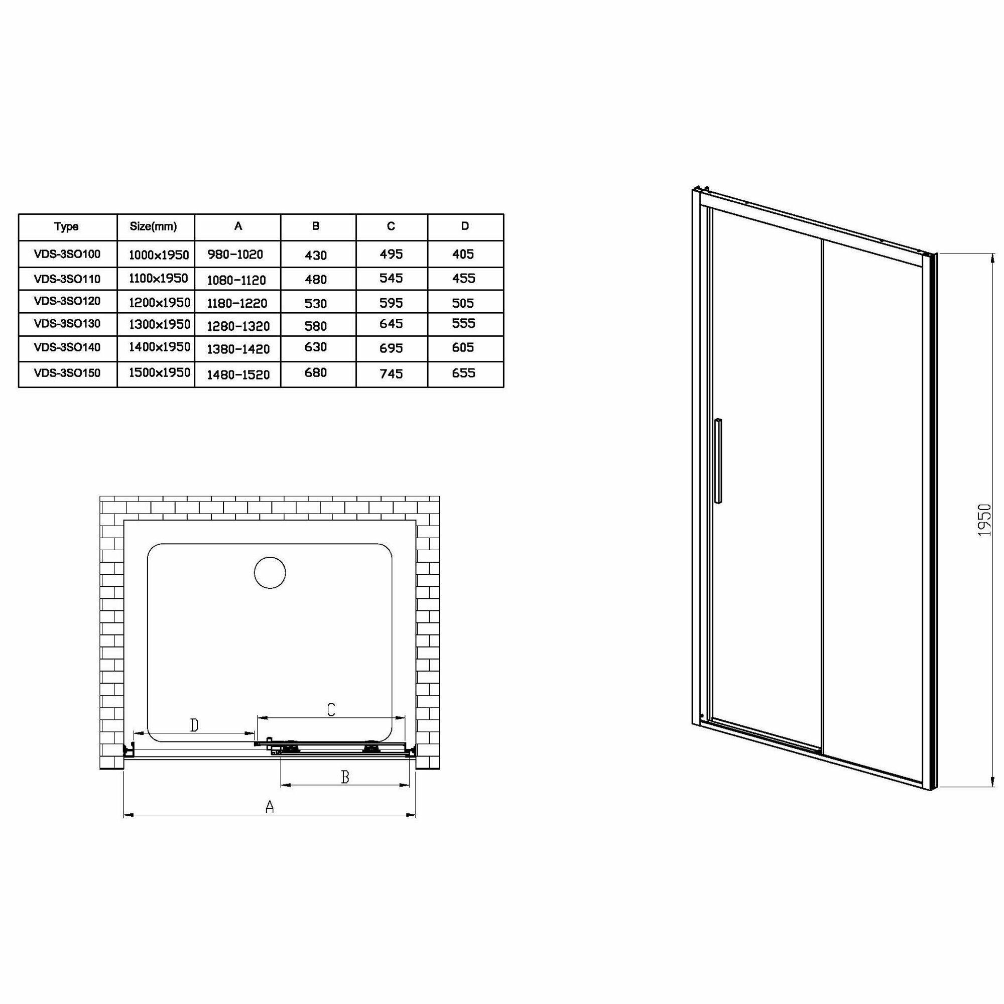 Душевая дверь Vincea Lugano 195х150 VDS-1L150CLB-1