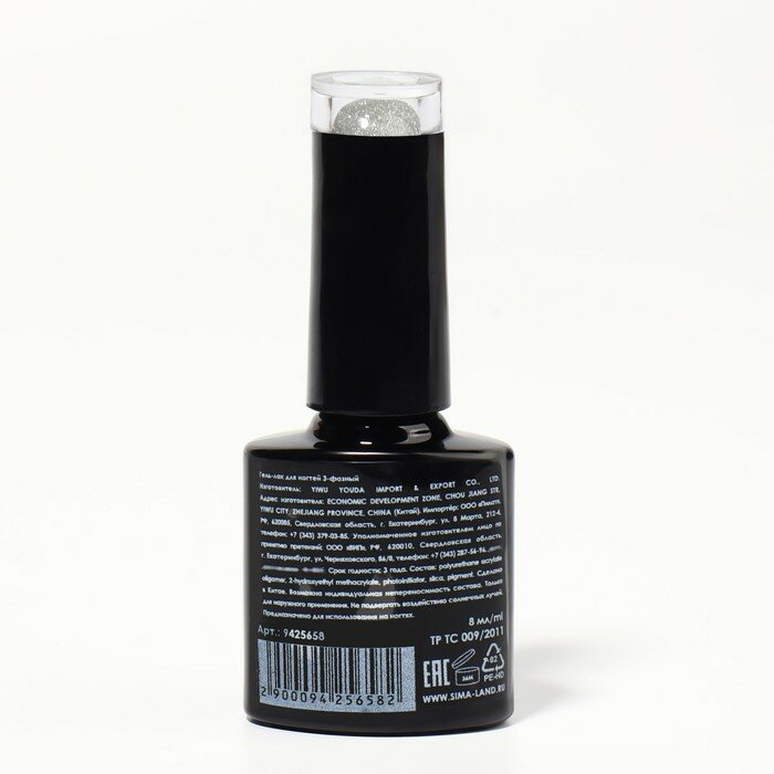 Гель лак для ногтей, жемчужный, с блёстками, 3-х фазный, 8 мл, LED/UV, цвет серый (92) интересное: