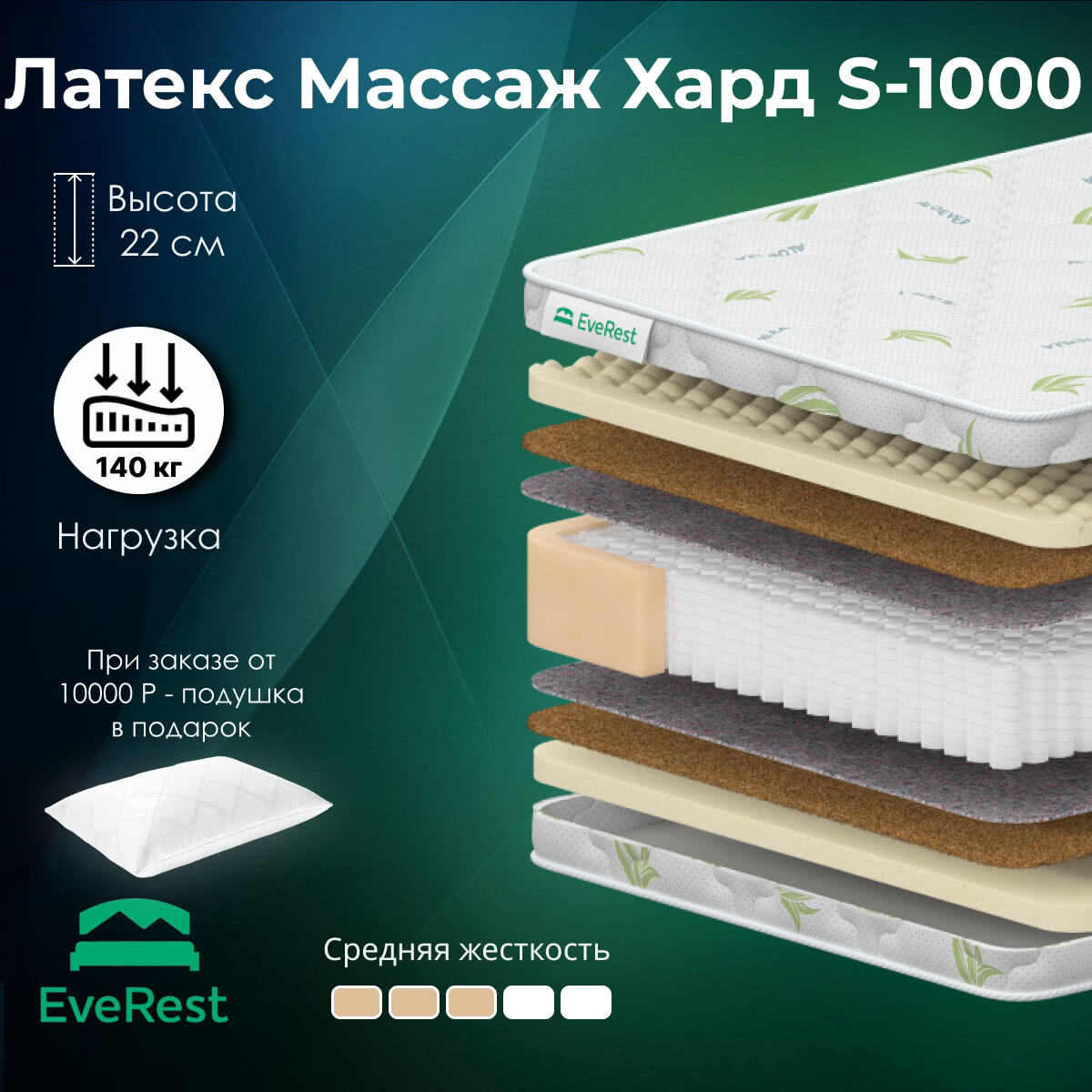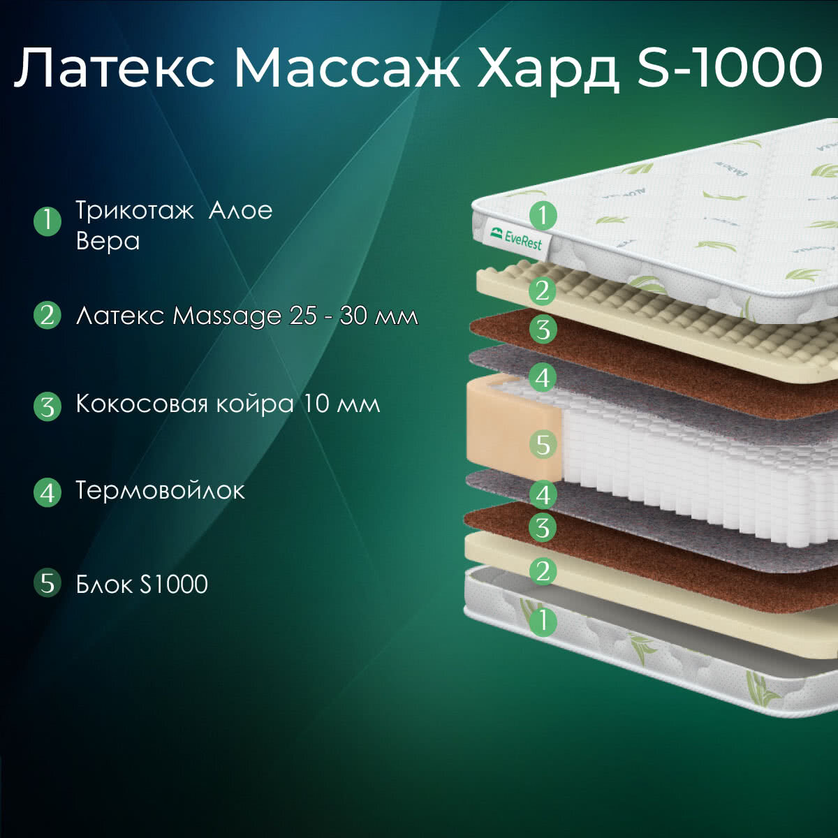 Матрас EveRest Латекс Массаж Хард S1000 180х200, стандартный