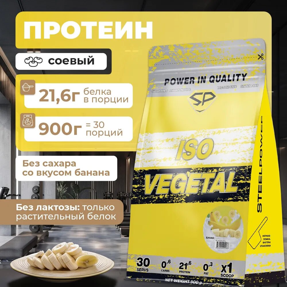 SteelPower Соевый протеин ISO VEGETAL, 900 гр, вкус «Банан», STEELPOWER
