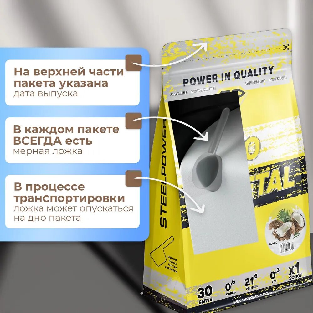 Купить STEEL POWER ISO Vegetal 900 г (Пакет 30 порций) (Кокос)