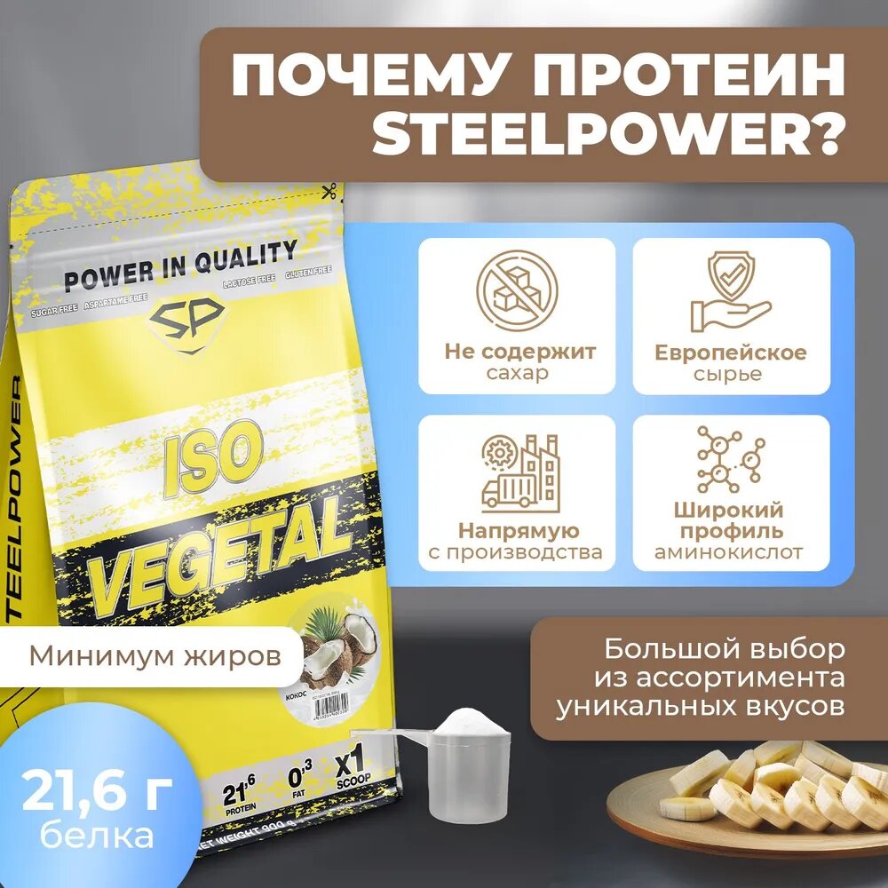 STEEL POWER ISO Vegetal 900 г (30 порций) (Банан)