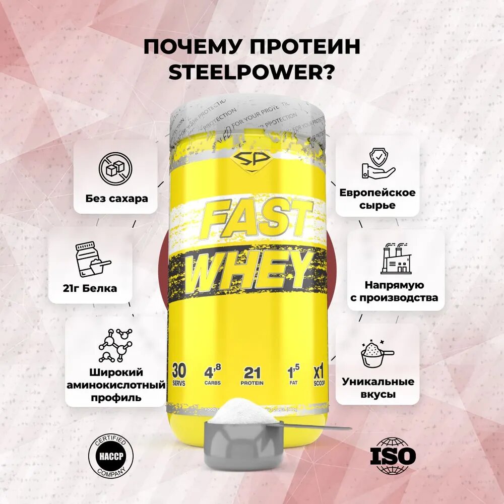 SteelPower Сывороточный протеин FAST WHEY, 900 гр, вкус «Клубника со сливками», STEELPOWER