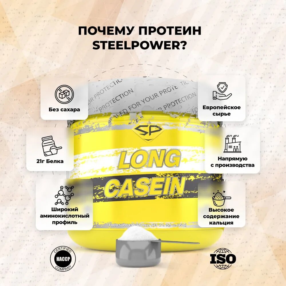 Купить Протеин казеиновый STEEL POWER Long Casein, Сливочная карамель, 450 г (15 порций)