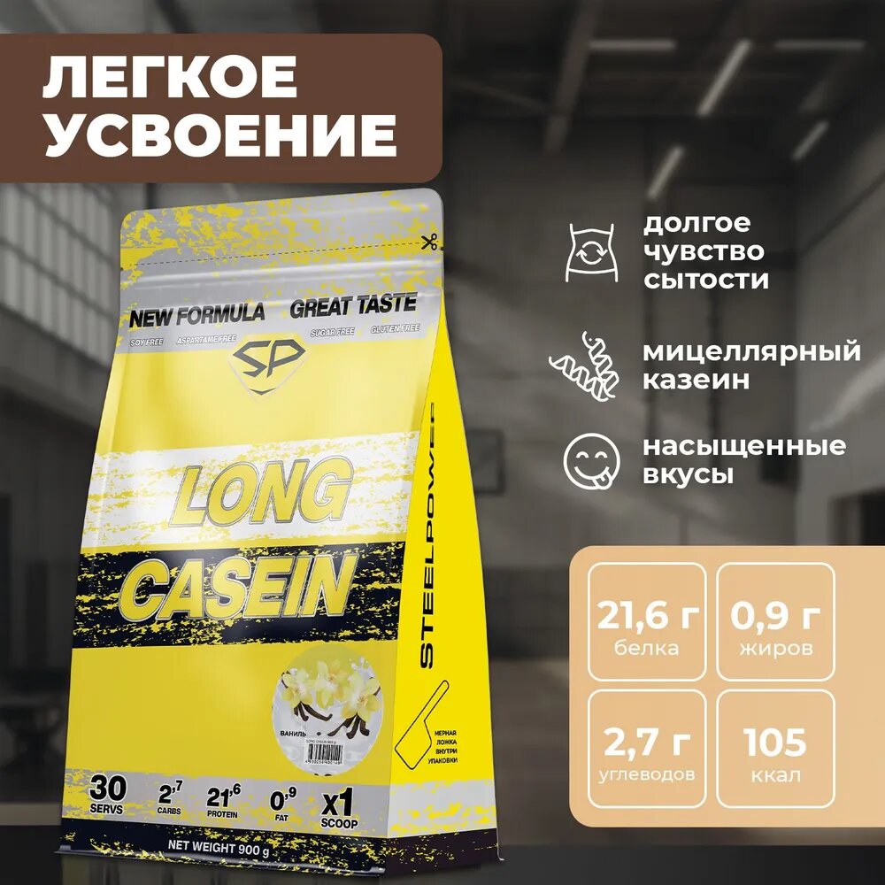 Купить STEEL POWER Long Casein 900 г (Пакет 30 порций) (Ваниль)
