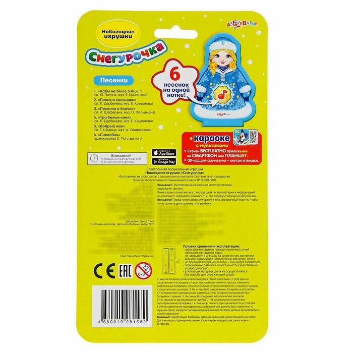 СохранитьМузыкальная игрушка Азбукварик "Снегурочка", 6 новогодних песенок, кнопка интересное: