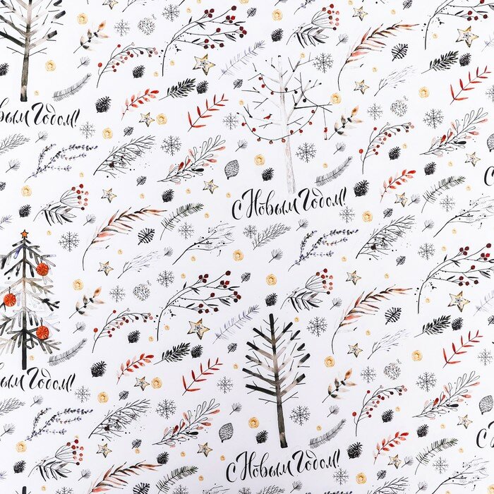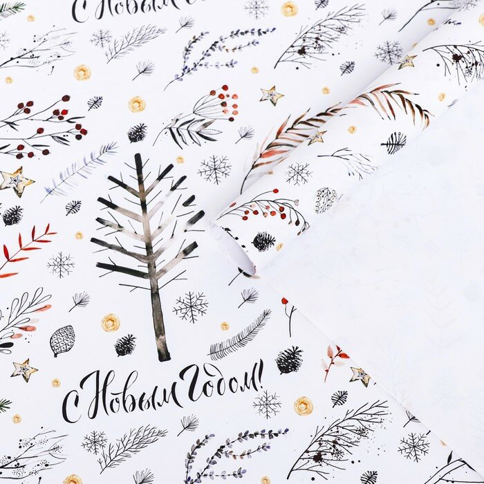Бумага упаковочная новогодняя глянцевая "Веточки ", 70 х 100 см. интересное: