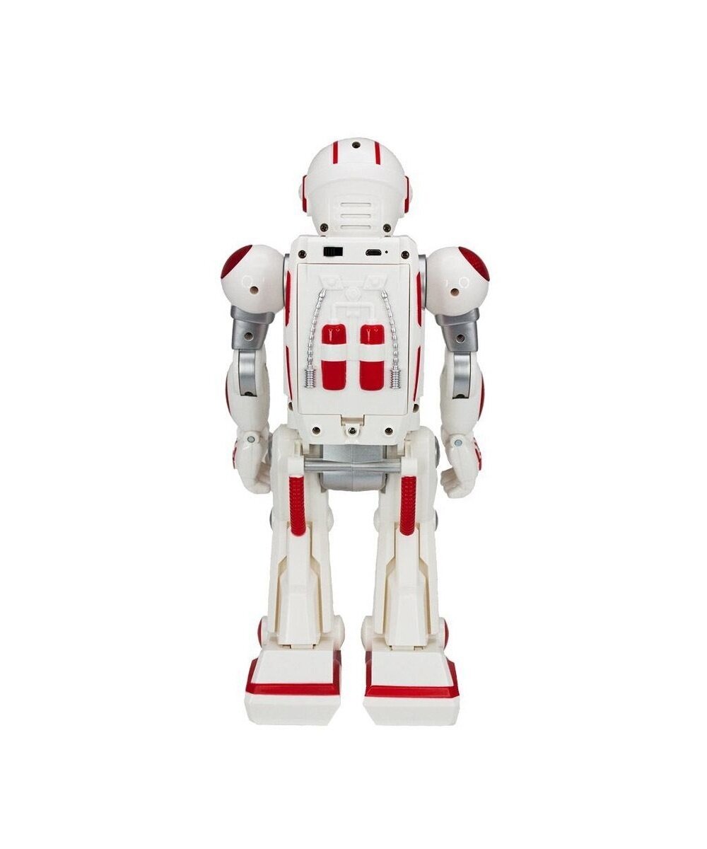 | Плюсы: | Это тот случай, когда реальность превосходит ожидания. Корпус не хлипкий, нет ощущения, что что то может отвалиться или сломаться. Большой плюс это то, что в самом роботе стоит аккумулятор, и робот заряжается, через мини usb, о батарейках можно не думать. На батарейках сам пульт управления, но их наверное хватит на долго. Робот либо шагает (ноги не сгибает), либо катится, смотря какой режим выбрать. Передвигается не особо шустро, я бы даже сказала, что очень медленно. Положение рук можно менять , перемещать вверх вниз и сгибать в локте, с пульта ими управлять нельзя. Есть супер функция -запись голоса и воспроизведение. Робот танцует, разговаривает на своём электронном языке, можно включить сирену , можно регулировать громкость сигналов, а можно и вовсе выключить всякую озвучку. так же можно выключить мигание лампочек. |