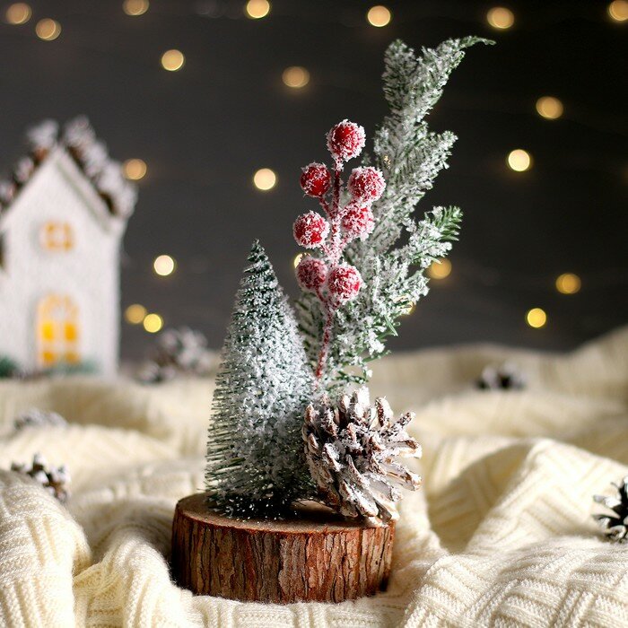 Новый год Композиция Ёлочка с веточками и шишкой, 13 x 13 x 26 см интересное: