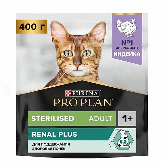 Купить Сухой корм для стерилизованных кошек PRO PLAN Sterilised RENAL PLUS для поддержания здоровья почек с индейкой, 400 гр