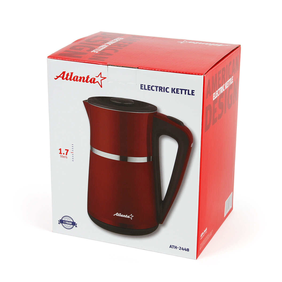 Электрический чайник Atlanta ATH-2445 1,7 л, двойные стенки, бордовый
